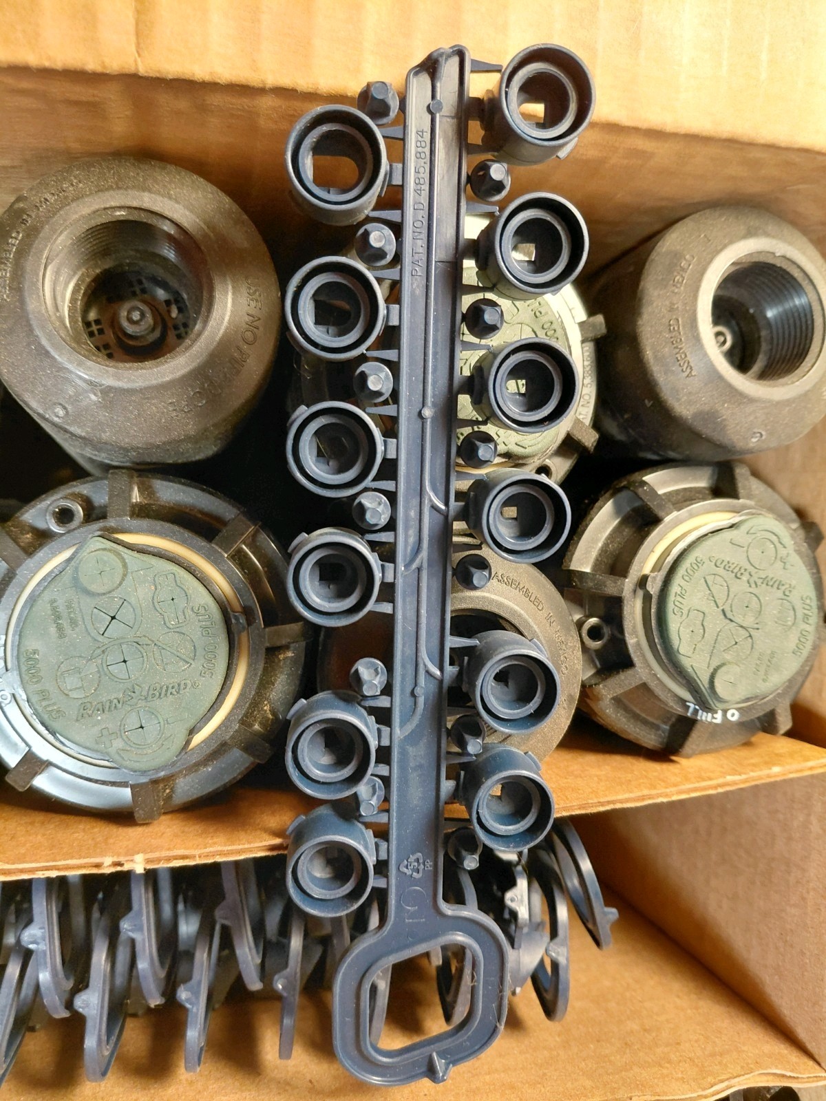 Rainbird 5000 Plus Sprinkler Full Circle 4" with Multiple Nozzle Tree Plastic Riser 5004PLFC 3/4" Inlet 4 in. 5000 Series Part/Full-Circle Pattern Pop-up Rotor with Flow Shut-Off Faster maintenance with a new self-cleaning arc adjustment screw - Heavy-duty cover assembly for extra durability Rain Curtain Nozzles - Slip clutch mechanism for quick adjustment on installation Heavy-duty retract spring assures positive pop-down - Top-adjust arc adjustment requiring only a flat-blade screwdriver 40 - 360 Degree arc rotation and reversing full circle rotation in one Relax with the knowledge your landscape is being watered by reliable 5000 Series Rotors and industry-leading Rain Curtain Nozzle Technology. Rain Bird® 5000 Series Rotors are ideal for medium to large-size lawns and evenly distribute water from 25 to 50 feet. Outstanding Results Superior Distribution Uniformity. 5000 Series Rotors with Rain Curtain Technology are engineered to deliver a uniform spray pattern, giving you a consistently green lawn throughout. Superior Wind Resistance The larger water droplets produced by Rain Curtain technology prevent misting and airborne evaporation so the right amount of water is delivered to the right place, saving you water and money. Superior Close-in Watering Gentle close-in watering eliminates dry spots around the rotor, prevents seed washout and allows the turf to grow healthy with no matting or bending. PRS Feature In-stem pressure regulator (PRS) reduces operating pressure to 45 psi (3,1 bar) for optimal nozzle performance PRS saves water by: Eliminating head-to-head pressure variations Eliminating misting due to high pressure Improving nozzle distribution uniformity by operating the nozzle at optimum pressure Maintenance-free design can be easily retrofitted into existing 5000/5000 Plus, T-Bird™ and Hunter® PGP™ (using UPG model) rotor cases without digging up the entire body Pressure: 25-75 psi (1,7 to 5,2 bar) Items have not been utilized in the field or dry fit. Please see pictures for reference! Feel Free to Communicate, I answer all messages within 24 hours Thank you for shopping my Colorado Small Business! Sprinkler Irrigation