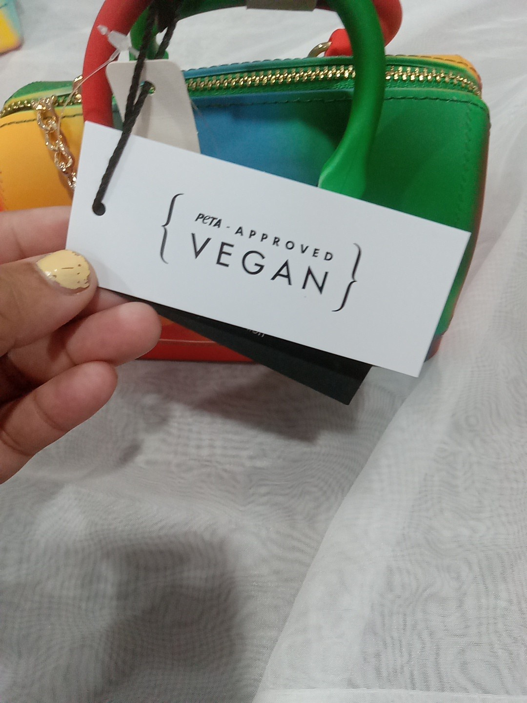 purchased this for my daughter she never used it. this rainbow purse is cute especially if you love small purses. big enough for those mini grab & go items & can be paired with any outfit.
