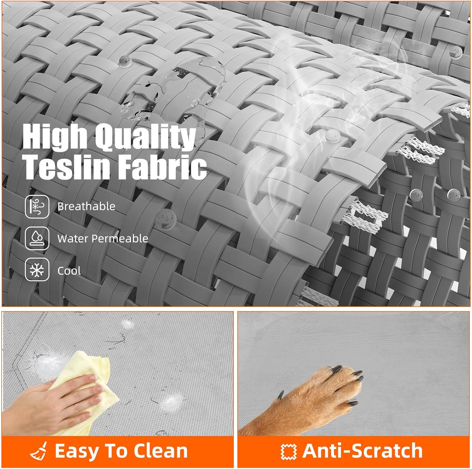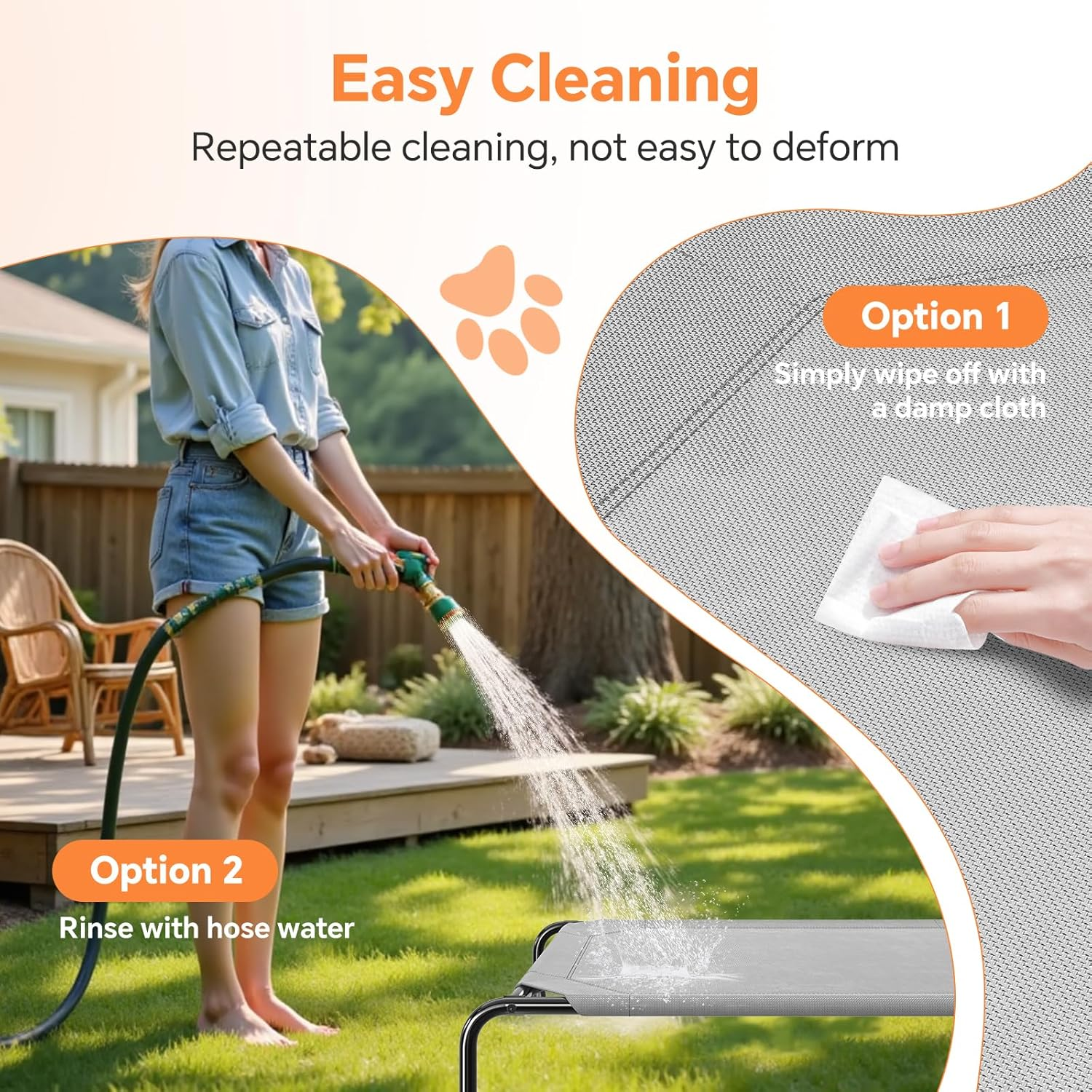 【Product Dimensions】47.75"L x 30.5"W x 8"Th. Raised dog bed designed for medium and large dog breeds, like a Poodle, Husky, German Shepherds, Golden Retrievers, Akitas and more. 【Strong & Durable】Constructed with upgraded 1-inch diameter tubing, this dog cot bed supports up to 200 pounds. To ensure sturdiness and longevity, assembly requires physical support and is best performed by two adults. 【Cooling Comfort】The elevated dog bed promotes airflow, keeping your dog dry and cool in all seasons. The 8-inch height perfectly accommodates dogs of all ages, from puppies to seniors. Suitable for indoor or outdoor use. 【Easy Care】 This cooling dog bed is easy to clean. Clean the mesh with tap water, a hose or a damp towel. For a deep clean, use a mild soap or natural all-surface cleaner and rinse thoroughly. 【Installation Tips & Support】(1) Placing the product on its side in assembly step 4 can be more convenient. (2) We provide detailed instructions and installation videos. Contact us if you have any questions. Product description Dog Bed Collection Add to Cart Add to Cart Add to Cart Add to Cart Add to Cart Customer Reviews 4.4 out of 5 stars 830 4.5 out of 5 stars 213 4.5 out of 5 stars 213 4.5 out of 5 stars 213 4.5 out of 5 stars 213 4.5 out of 5 stars 213 4.5 out of 5 stars 213 Price $27.99 $ 27 . 99 — $35.99 $ 35 . 99 $35.99 $ 35 . 99 — $53.99 $ 53 . 99 $27.99 $ 27 . 99 Color Grey Dark Grey Brown Green Blue Black Black Size 47.75"L x 30.5"W x 8"Th 47.75"L x 30.5"W x 8"Th 47.75"L x 30.5"W x 8"Th 47.75"L x 30.5"W x 8"Th 47.75"L x 30.5"W x 8"Th 60.25"L x 37.25"W x 8"Th 36.5"L x 22.5"W x 8.25"Th Material Teslin Mesh, Metal Teslin Mesh, Metal Teslin Mesh, Metal Teslin Mesh, Metal Teslin Mesh, Metal Teslin Mesh, Metal Teslin Mesh, Metal Waterproof ✔ ✔ ✔ ✔ ✔ ✔ ✔ Easy to Clean ✔ ✔ ✔ ✔ ✔ ✔ ✔