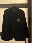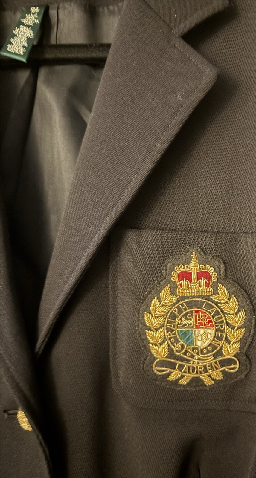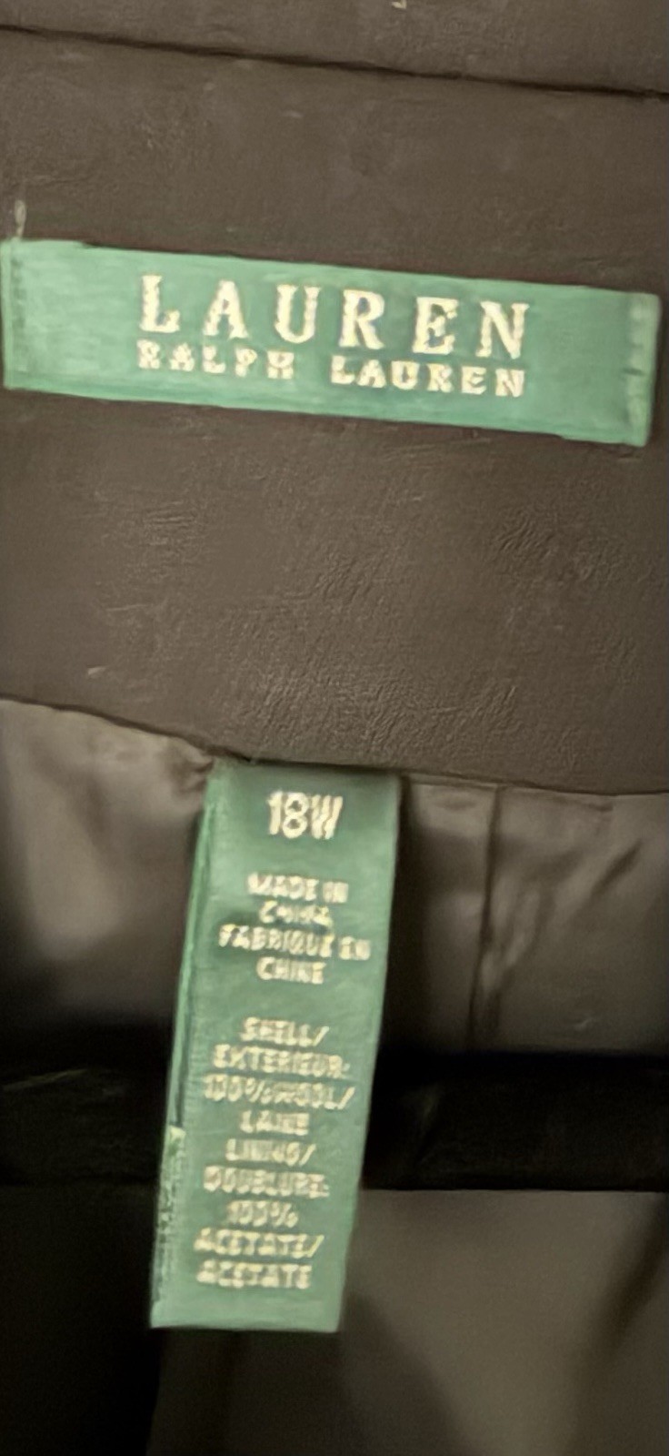 The Ralph Lauren Black Wool Crest Blazer in Women's Size 18W Plus is a classic and stylish piece perfect for a variety of occasions. Made from a fabric of wool this blazer features a four-button sleeve button style, a notch lapel, and is lined with acetate. The black color and solid pattern make it versatile for both formal and casual events, and the designer brand adds a touch of sophistication. With a regular fit and long sleeves, this blazer is a timeless addition to any wardrobe, ideal for those who appreciate preppy academia style.measurements pit to pit 23 inches , length 29 1/2 and sleeve length 25 inches from shoulder to cuff . Beautiful blazer . Perfect w t shirt and jeans and your favorite scarf !!