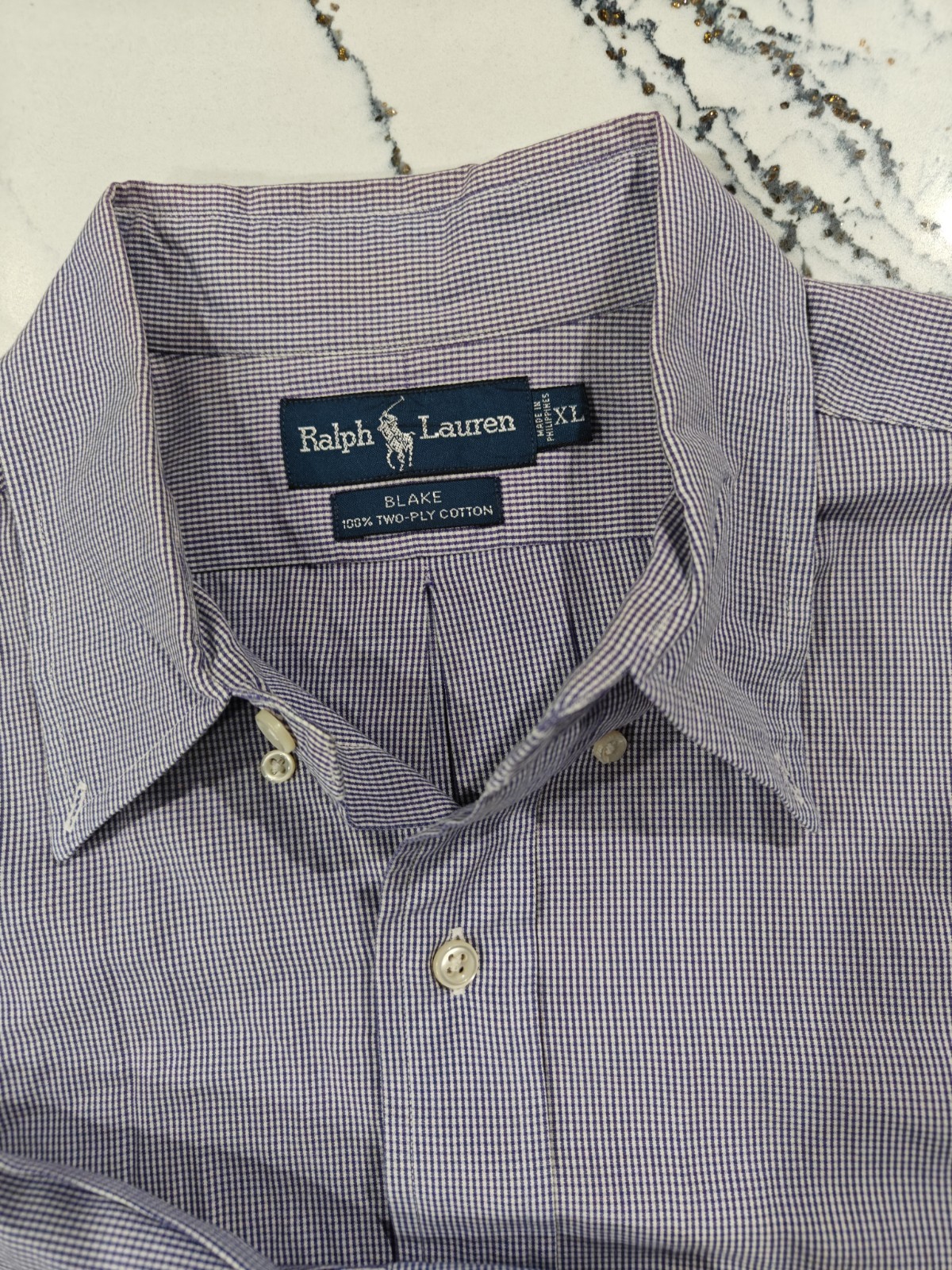 Ralph Lauren Blake Mens XL Long Sleeve White Purple Button Down Shirt Plaid. Condition is Pre-owned - Good. Shipped with USPS Ground Advantage.