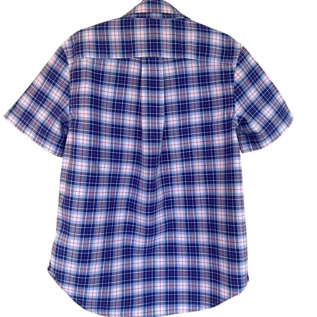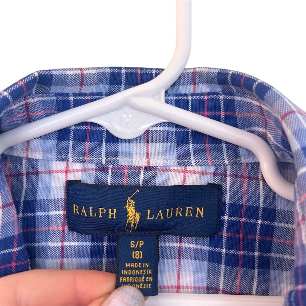 The Ralph Lauren Boys Small Blue Plaid Short Sleeve Button-Up Shirt is a classic and preppy addition to any young boy's wardrobe. Made by the renowned brand Ralph Lauren, this shirt is designed specifically for boys in size 8 years old. The blue plaid pattern adds a stylish touch, while the short sleeves make it ideal for casual wear. With a button-up style, this shirt is perfect for more formal occasions or layering over a shirt for a polished look.
