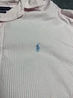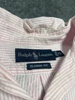 This Ralph Lauren button-up shirt is a must-have for any fashion-forward man. The classic fit and colorful striped pattern make it perfect for any occasion, whether it's a casual day out or a business meeting. The shirt features long sleeves, a collared neckline, and button closure for a sophisticated look. Made of lightweight and easy-care cotton material, this shirt is machine washable for convenience. The shirt also boasts embroidered accents and a button-down collar style for added style. Available in XL size and chest size of 50 inches, this shirt is perfect for men who want to look and feel their best.
