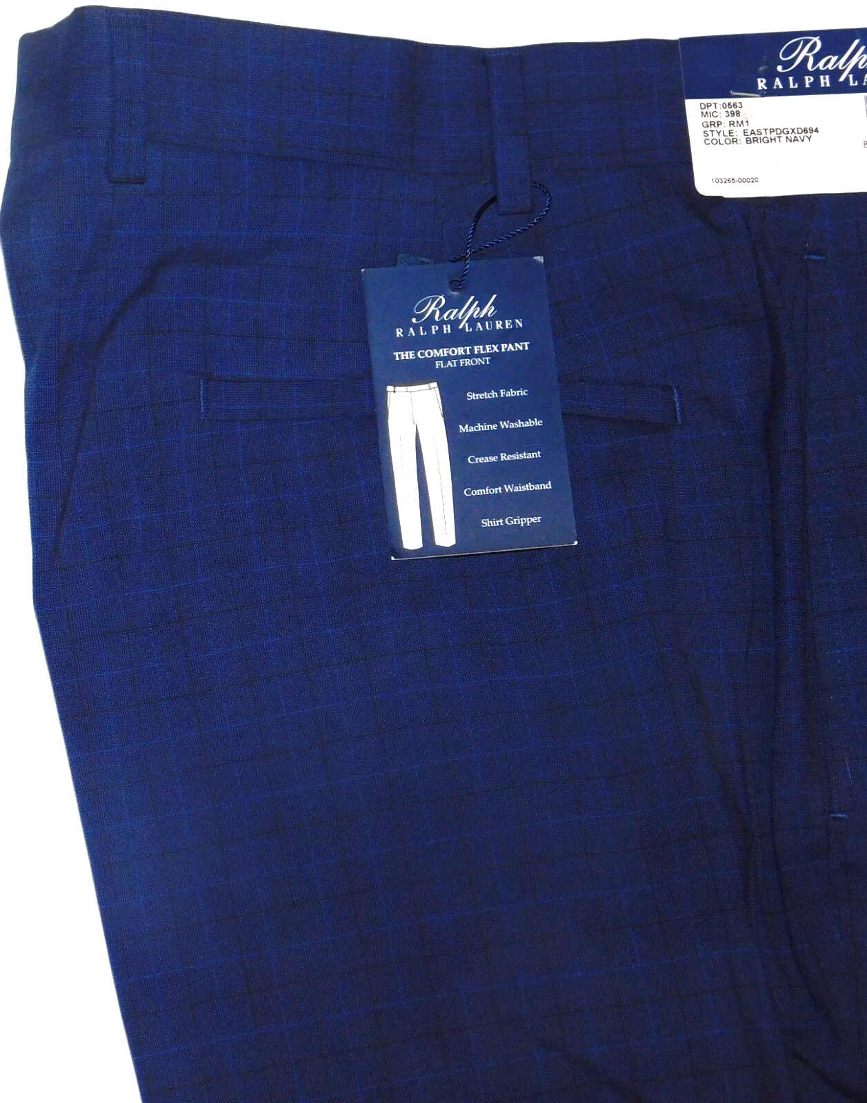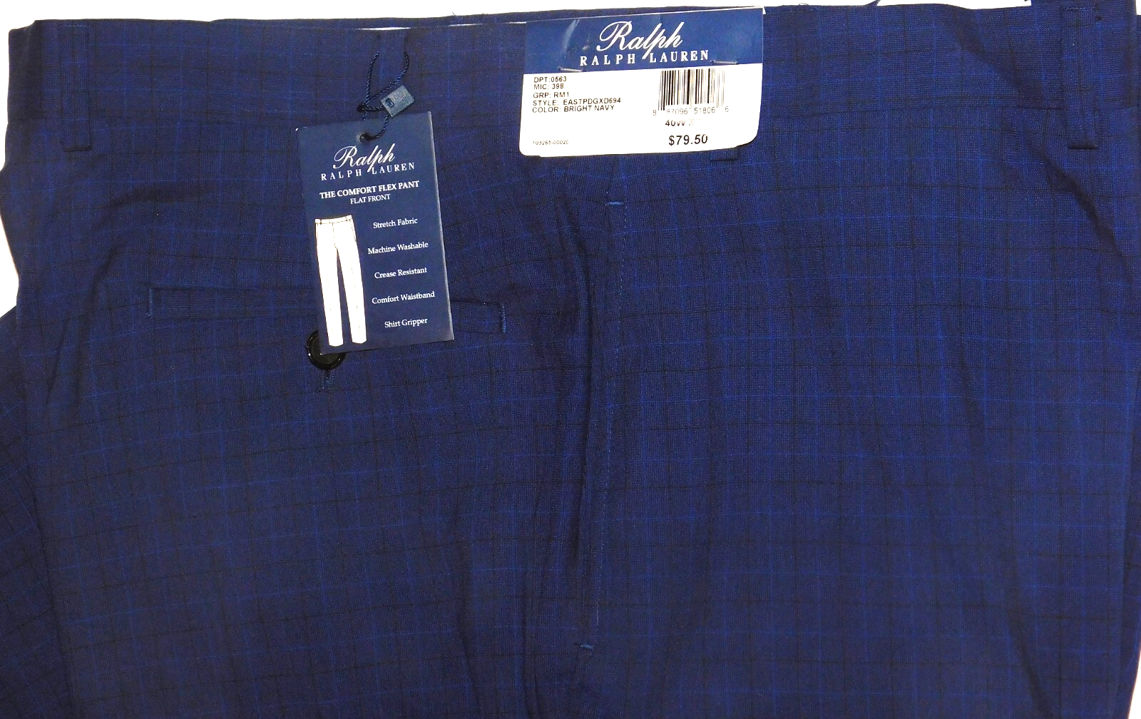 New With Tags MSRP $79.50 Ralph Ralph Lauren The Comfort Flex Dress Pants Classic Fit Straight Leg Performance Fabric Stretch Crease Resistant Stretch Waistband Shirt Gripper Comfort Fit Zip & Button Tab Belt Loops Polyester Blend Bright Navy Tonal Plaid ** Shipments only within the United States, I no longer ship internationally ** Returns are accepted as long as they are in the same condition as they were when shipped: ALL factory tags ATTACHED as shipped (I only sell new with factory tag items) Unworn/Unlaundered/No smell of smoke/No pet smells or pet hair Thank you!