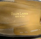 Ralph Lauren Crocodile Embossed Leather Penny Loafers in size 10 AA for women boast a sophisticated almond toe shape and slip-on style. These limited edition flats feature a low heel and lightweight design, crafted in Italy with luxurious leather lining and outsole. The crocodile embossed upper adds a touch of elegance to this classic Penny Loafer style.