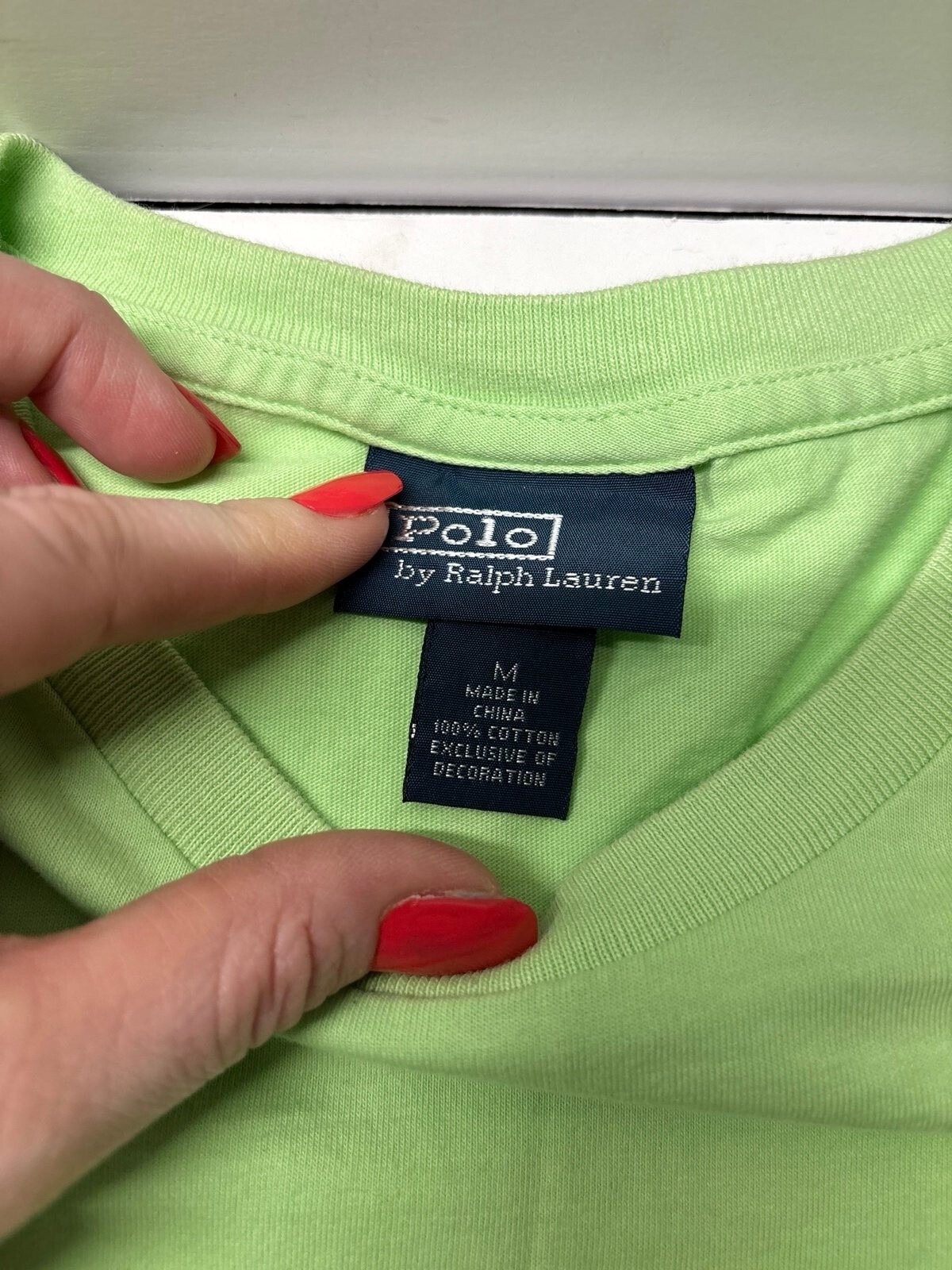 Polo by Ralph Lauren, Basic Tee, Kiwi Green color perfect for spring or summer. Nice and soft. Men’s size medium has a navy blue logo on the pocket gently used smoke, free, pet friendly home no stains or holes. Bin: D35 clothes
