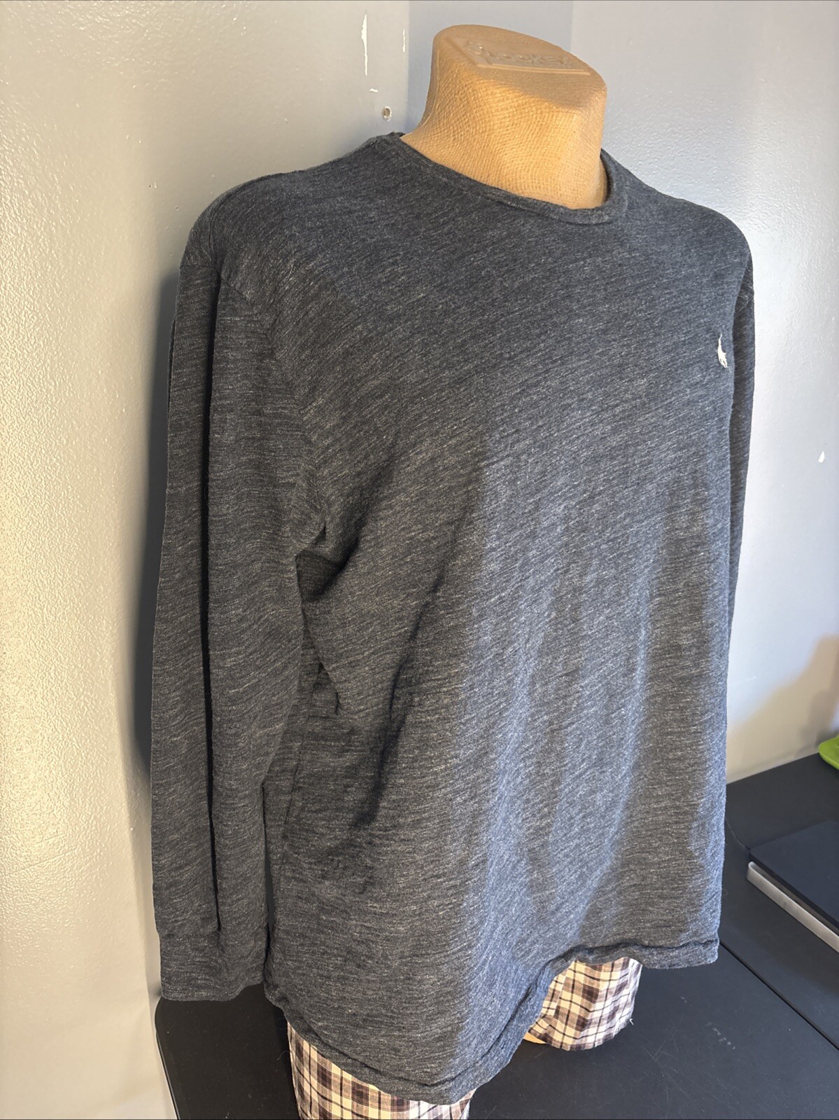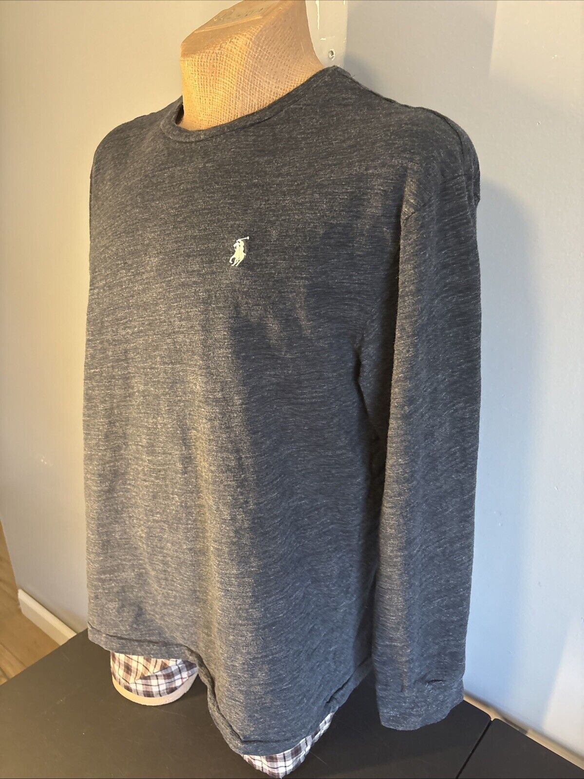 Polo Ralph Lauren Shirt Mens Long Sleeve Embroidered 100% Cotton Shirt Dark Navy heather designed with white horse logo Good overall condition Pre owned as shown *check out my other listings for similar brands, styles and sizes*