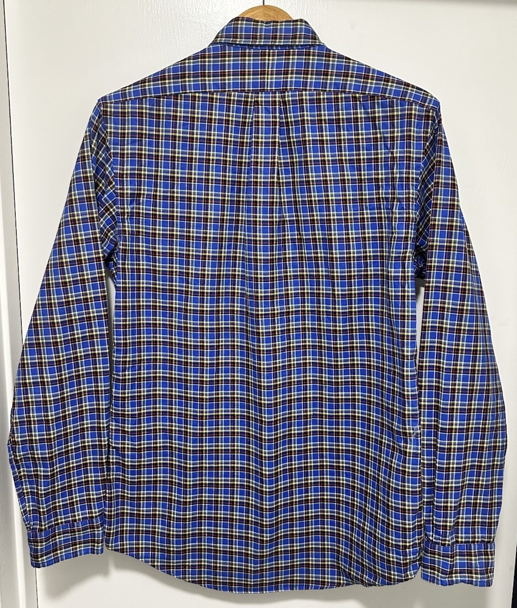 This Ralph Lauren Men's Size Small Blue/Multicolor Plaid Cotton Button Down Long Sleeve Shirt is a versatile option suitable for various occasions such as travel, casual outings, or business meetings. The shirt features a collared neckline, button-down collar style, and easy-care machine washable material, making it convenient for everyday wear. The multicolor plaid pattern adds a classic and colorful touch to the garment, which is designed in a regular fit for comfort and style. With its quality craftsmanship and timeless appeal, this shirt is a great addition to any man's wardrobe, embodying a sense of classic preppy style. In Very Good Condition. No Holes or Staining. See All Photos. Tape Measurements: Armpit to Armpit: 21” (Chest: 42”) Shoulder to Shoulder: 17” Top Collar to Bottom Hem: 32.5” Sleeve Length(from center back collar to end of sleeve): 34.5”