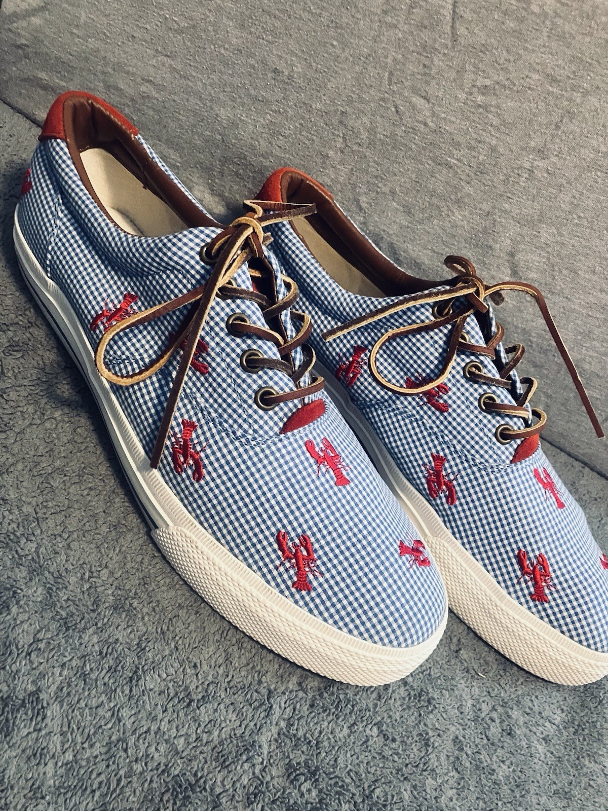 A PRE-OWNED Pair of Polo Ralph Lauren Vaughn C Boat Shoes with Lobster Print w/Leather Laces….,Men’s Size 11D….the shoes are PRE-OWNED with NO BOX but are in great shape... Check out the pictures and judge the condition for yourself and feel free to ask any questions before purchasing... THANKS FOR LOOKING and remember the FREE SHIPPING!!