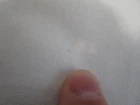 There are a couple very tiny flecks of color on a couple spots. Shown in the photos.