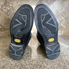 Amazing condition, they look like they have only been worn a few times. The only things i see that make them less than brand new is the tiniest bit of wear on the heel as well as the trim coming up in a very small area on one boot. It is still stitched down but the lip is slightly peeled up. See the photos of these pristine boots!
