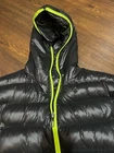 Stay warm and stylish this winter with this black and neon green hooded puffer jacket from Ralph Lauren RLX. Made with soft shell fabric and down insulation, this mid-length jacket is perfect for casual occasions and skiing trips. The zipper closure and hooded collar add a touch of convenience and comfort to this slim fit jacket. Machine washable and with a solid pattern, this jacket is easy to care for and maintain. The RLX model and brand ensure high quality and durability. Don't let the cold weather stop you from enjoying your winter activities with this reliable and fashionable jacket.