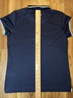 This Ralph Lauren RLX polo shirt is perfect for any active woman who wants to look stylish while playing golf or other sports. The shirt features snap metal buttons, a collared neckline, and short sleeves, making it easy to wear and comfortable. It is made of 54% polyester and 46% cotton, and comes in a beautiful blue color with the Ralph Lauren RLX logo on it. The shirt is tailored to fit perfectly, and is a size S. It is part of the Ralph Lauren RLX Polo Golf product line, and was made in Peru. Whether you're playing in the Olympics or just having a casual day out, this shirt is the perfect choice for any activewear occasion.