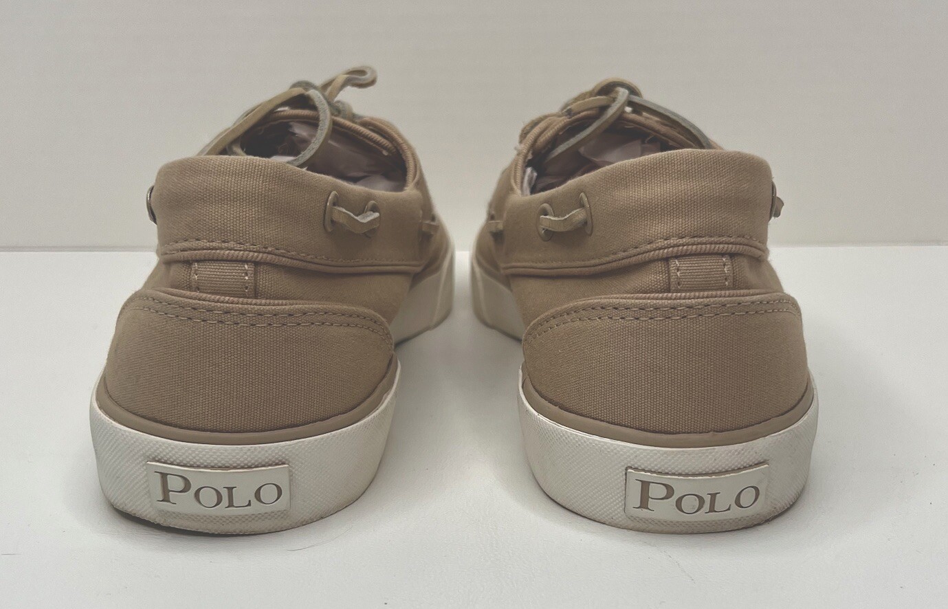 Up for purchase is a pair of khaki color Men’s Polo Ralph Lauren Sander P Canvas Top Sider Boat Shoes. They have leather shoe strings. They are a Size 11D. These shoes are lightly used. There are some marks on the rubber soles, a small amount of pilling from navy socks. There is very little wear on the bottom of the shoes. There is a few very small areas on the canvas that need a light cleaning. Overall, they are in very good pre-owned condition. Please look at all the pictures and use the zoom feature for a close up view. Measurements of the bottom of the shoe is 12” from the back of the heel to the center tip of the toe. READ: The color of the shoes are lighter than they appear in the pictures due to lighting. The color shown in the picture is not 100% accurate due to lighting. My home is SMOKE FREE. Thank you for your visiting my store. I appreciate and value your business. Import duties, taxes and charges are not included in the item price or shipping charges. These charges are the buyer's responsibility. Please check with your country's customs office to determine what these additional costs will be prior to bidding/buying. These charges are normally collected by the delivering freight (shipping) company or when you pick the item up – do not confuse them for additional shipping charges. I do not mark merchandise values below winning bid amount or mark items as "gifts" - US and International government regulations prohibit this practice.
