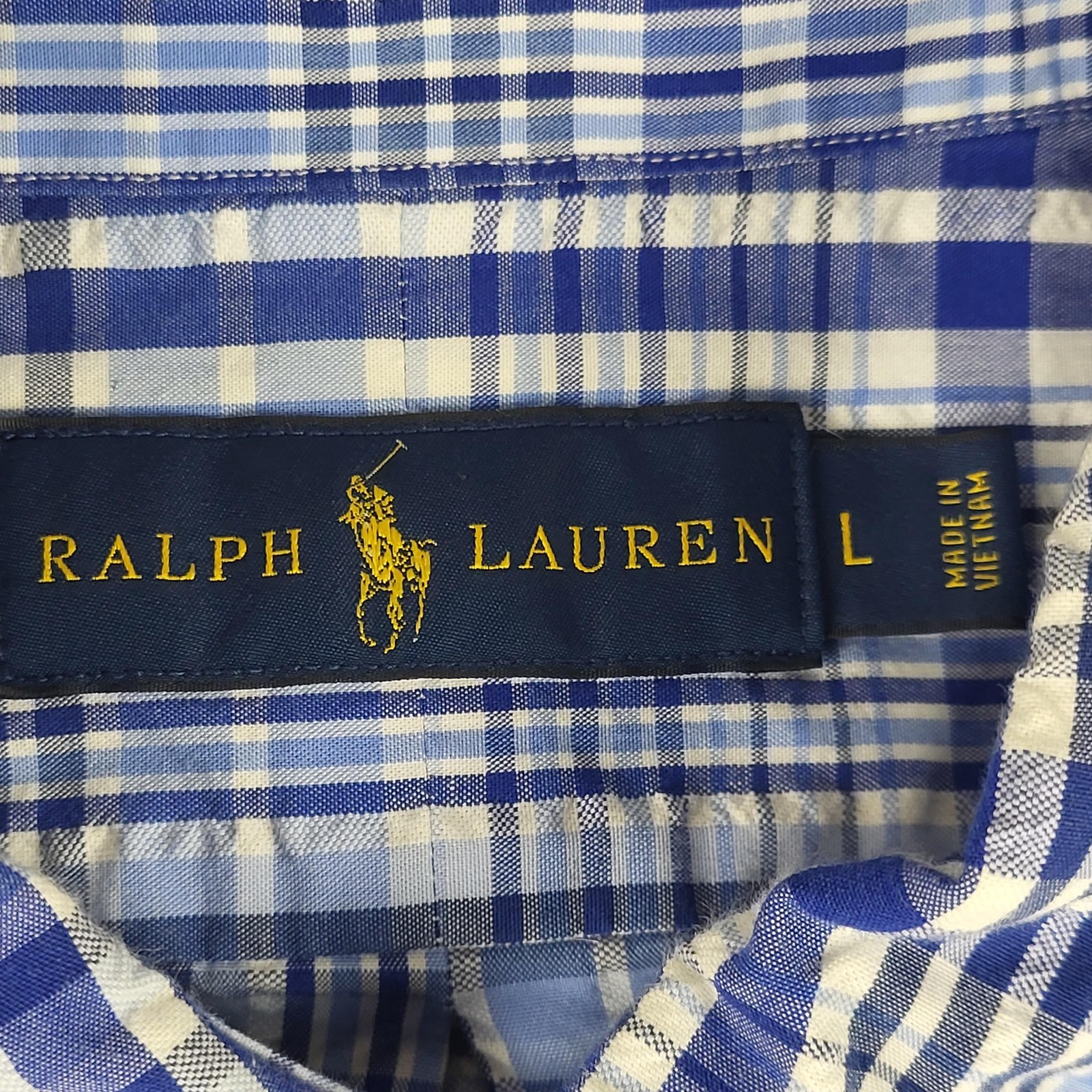 Ralph Lauren Shirt Mens Large Blue White Plaid Button Down Short Sleeve Summer Condition: Gently worn, no visible flaws noted Classic short sleeve button down shirt in a blue and white plaid pattern Tag size: Large Embroidered Polo pony logo on chest Button-down collar and front placket with white buttons Approximate flat measurements (laying flat): - Pit to pit: 23 in - Length (collar seam to hem): 31 in Made in Vietnam Great for casual wear, business casual, or summer outfits Disclaimer: Different sources of lighting can change your perspective on the color of the clothing Disclaimer: All clothing is measured in a resting position lying flat. All items have been cleaned per eBay standards & policies. We ship items daily via USPS Ground Advantage or Priority Mail with a tracking number for confirmation, so expect a quick delivery. We also offer free 30-day returns!! Please feel free to reach out anytime with any questions you may have. Thank you for shopping at Curiosity Corner RVA!!! Follow my store for greater discounts seller:kevredfor_0