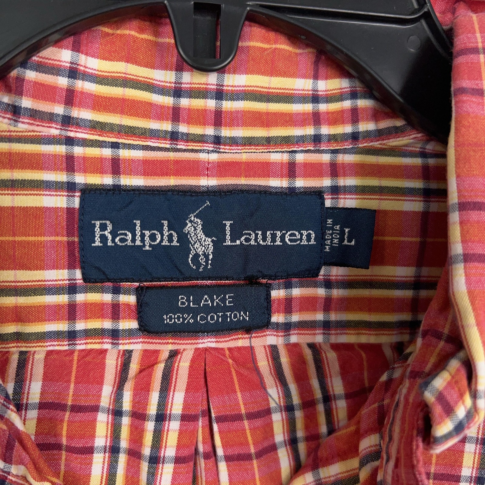 Ralph Lauren Shirt Mens Large Red Yellow Plaid Blake Button Down Classic Preppy Condition: Gently worn, no visible flaws. Shirt is in very good used condition with no stains, rips, or holes noted. Classic Ralph Lauren styling with multicolor red, yellow, and white plaid pattern and embroidered blue polo pony logo on chest. Tag Size: Large (Mens) Material: 100% Cotton Model: Blake Button front closure, button down collar, long sleeves with button cuffs, pleated back for comfortable fit Approximate flat measurements in photos Perfect for casual or preppy wear. Versatile year-round button down style from Ralph Lauren. Measurements: - Previous washings may change the sizing written on the tag. - Please refer to the photos above for all measurements. - Please compare our measurements to that of one of your favorite garments. - Please note, item measurements are approximate . All items are bagged and sealed after being photographed, then stored in a smoke free environment to ensure the item is exactly the same as when photographed. All items have been washed per eBay standards & policies. I carefully package and ship daily. Feel free to contact me with any questions.