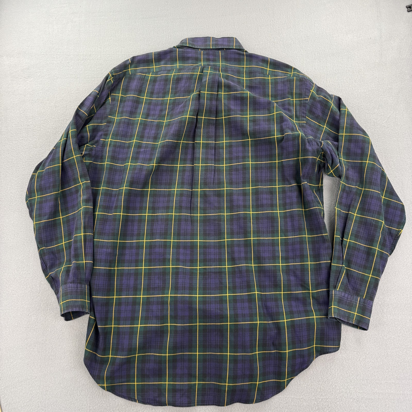 Ralph Lauren Shirt Mens Medium Green Purple Plaid Blake Button Down Long Sleeve Classic Condition: Good pre-owned condition, gently worn with no visible flaws 100% cotton construction for softness and durability Classic button down front with button collar detail Signature Ralph Lauren embroidered Polo pony logo on chest Green, purple, blue, and yellow plaid pattern for timeless style Button cuffs and rear locker loop for a tailored look Tag size: Medium (Mens) Style: Blake (Classic fit) Please review all photos for details and close-ups of branding