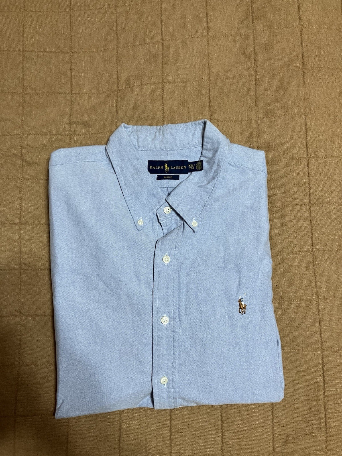 This Ralph Lauren Men's XXL slim fit solid blue button-down shirt is a versatile and stylish addition to any man's wardrobe. Made from 100% cotton with a woven fabric type, this shirt is machine washable and perfect for casual occasions in the summer and spring seasons. The classic collared neckline and short sleeves make it a comfortable and fashionable choice for any casual event. The solid blue color and button accents add a touch of sophistication to this timeless piece, making it a must-have for any man looking to elevate his style.