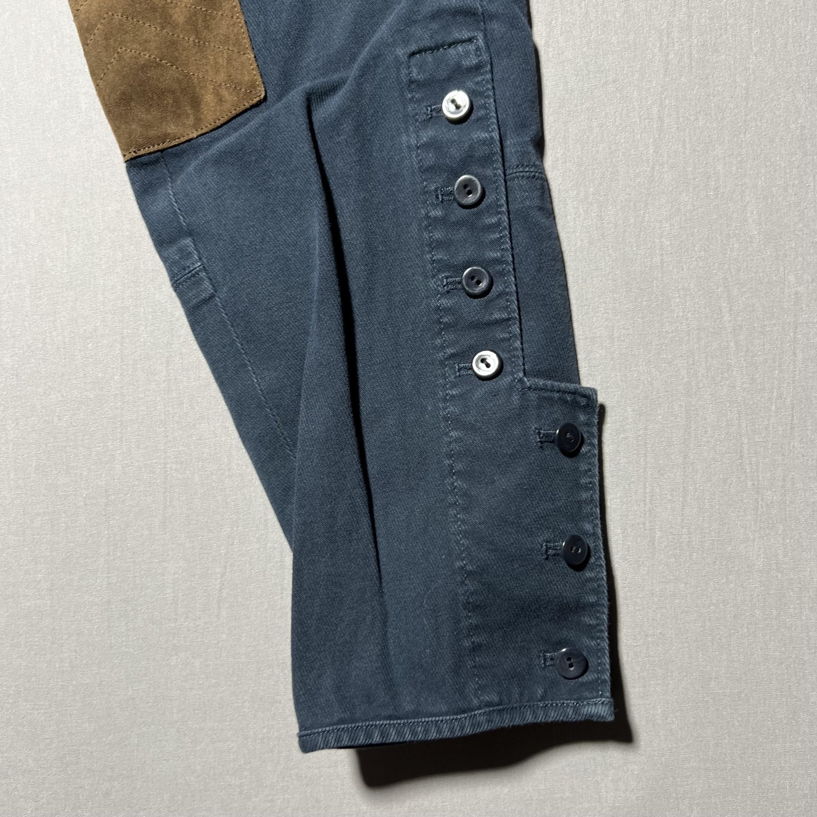 Ralph Lauren Sport Pants Womens 12 Blue Riding Equestrian Suede Patch Jodhpurs Condition: Good used condition. No major visible flaws. Buttons on leg cuffs, suede inner knee patches, and reinforced seat area. Please view all images for details and signs of light wear. Material: 98% Cotton, 2% Elastane according to inside tag Features classic equestrian/jodhpur style with tan brown suede-like knee patches, button details at ankle, zip fly with button closure, and multiple pockets including back buttoned pockets and angled front slit pockets. Belt loops at waist. Size: Womens 12 (tag) Brand: Ralph Lauren Sport Color: Dark blue body with tan suede patches Care: Machine wash cold, gentle cycle; tumble dry low. Turn garment inside out and close fasteners before washing. Approximate flat measurements shown in photos: - Waist: See photo with ruler (approx. 17 inches across, double for waist circumference) - Inseam: See photo with ruler (approximately 27 inches) - Leg opening: See photo with ruler (approximately 5 inches across) Made in China Perfect for horseback riding, equestrian sports, or stylish casual wear!