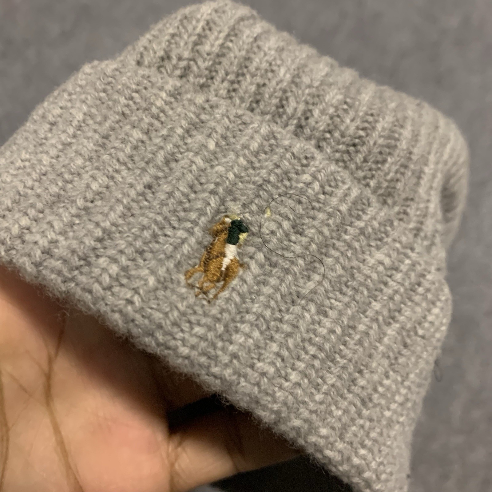 Ralph Lauren Unisex Gray Merino Wool Beanie Winter Hat Small