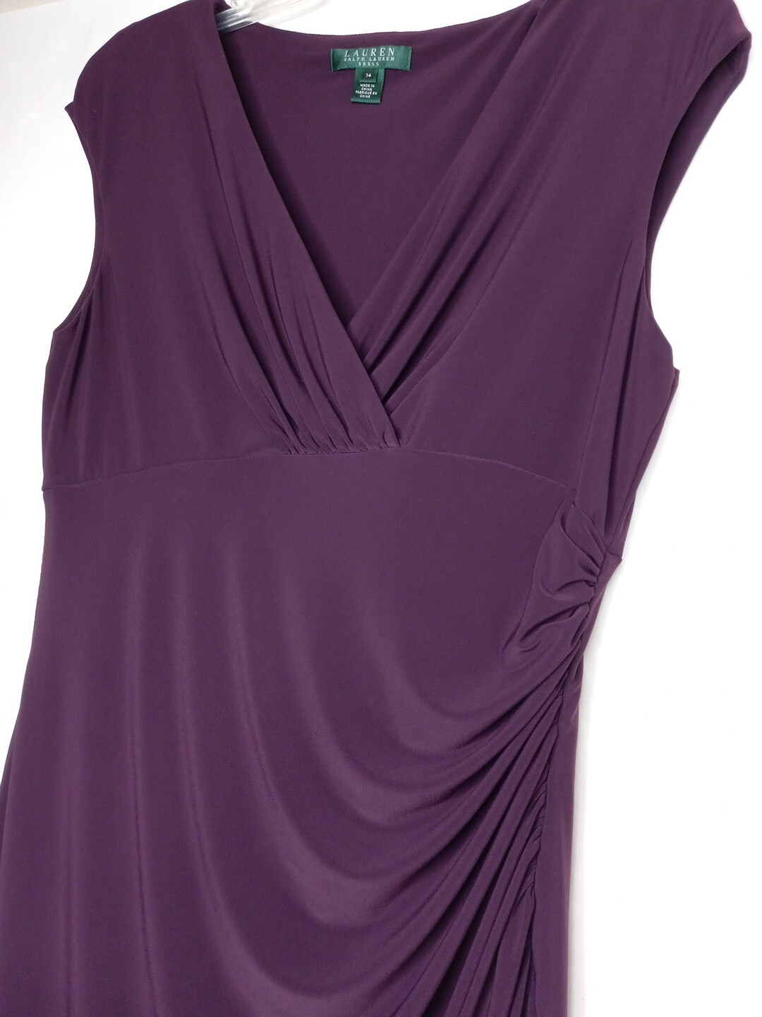 Ralph Lauren women's dress plum purple knee length sleeveless with side Rouge size 14. Head shoulder pads. Please listing photos for details and measurements. Ships USPS ground advantage mail. • Feel free to contact me if you have questions on any of my items. • Buy with confidence! I pride myself in complete transparency with item descriptions and photos for your complete satisfaction. • Colors in listing photos may vary slightly due to your screen calibrations and settings. • Please ensure your shipping address is correct prior to payment for a smooth transaction. • All fragile items will always be packaged securely prior to shipping. • Visit LK Auctions to view my current selection of items and if you like what you see please follow my store.