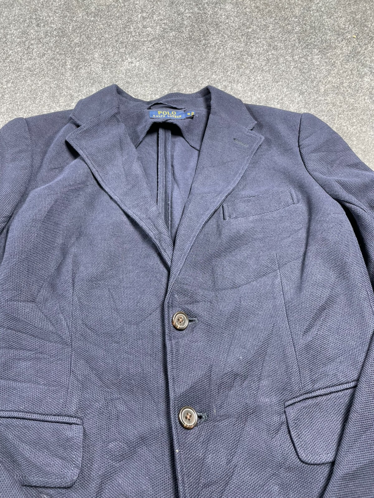 This Polo Ralph Lauren blazer is a must-have for any woman's wardrobe. The soft and stretchy cotton material makes it comfortable to wear, while the solid blue color and classic design make it versatile for any occasion. The blazer features long sleeves and a button closure, as well as accents with the iconic Polo Ralph Lauren logo. The blazer is lightweight and has pockets, making it perfect for travel, casual outings, or business meetings. It is a regular fit and comes in size 10, with a knit fabric type and wool insulation material. The blazer is collared and has a button-up style, perfect for a 90s or school-themed outfit. This item is a dry clean only and is made in China.
