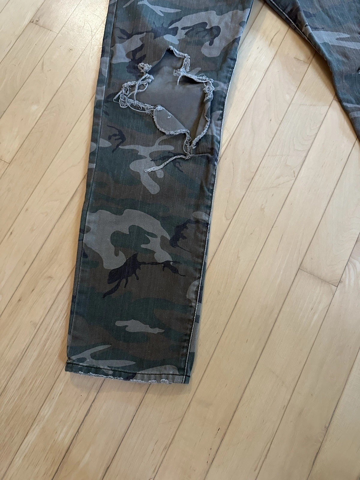 The product is a pair of Ralph Lauren X Denim & Supply women's pants in size 29, featuring a camouflage pattern in a cotton blend material. These cropped pants have a mid-rise waist and a straight leg style, making them suitable for casual occasions. The pants are machine washable and come with button and zipper closures, as well as logo accents. They also have pockets and are designed by Lauren Ralph Lauren, adding a touch of style to your wardrobe for any season. 1506