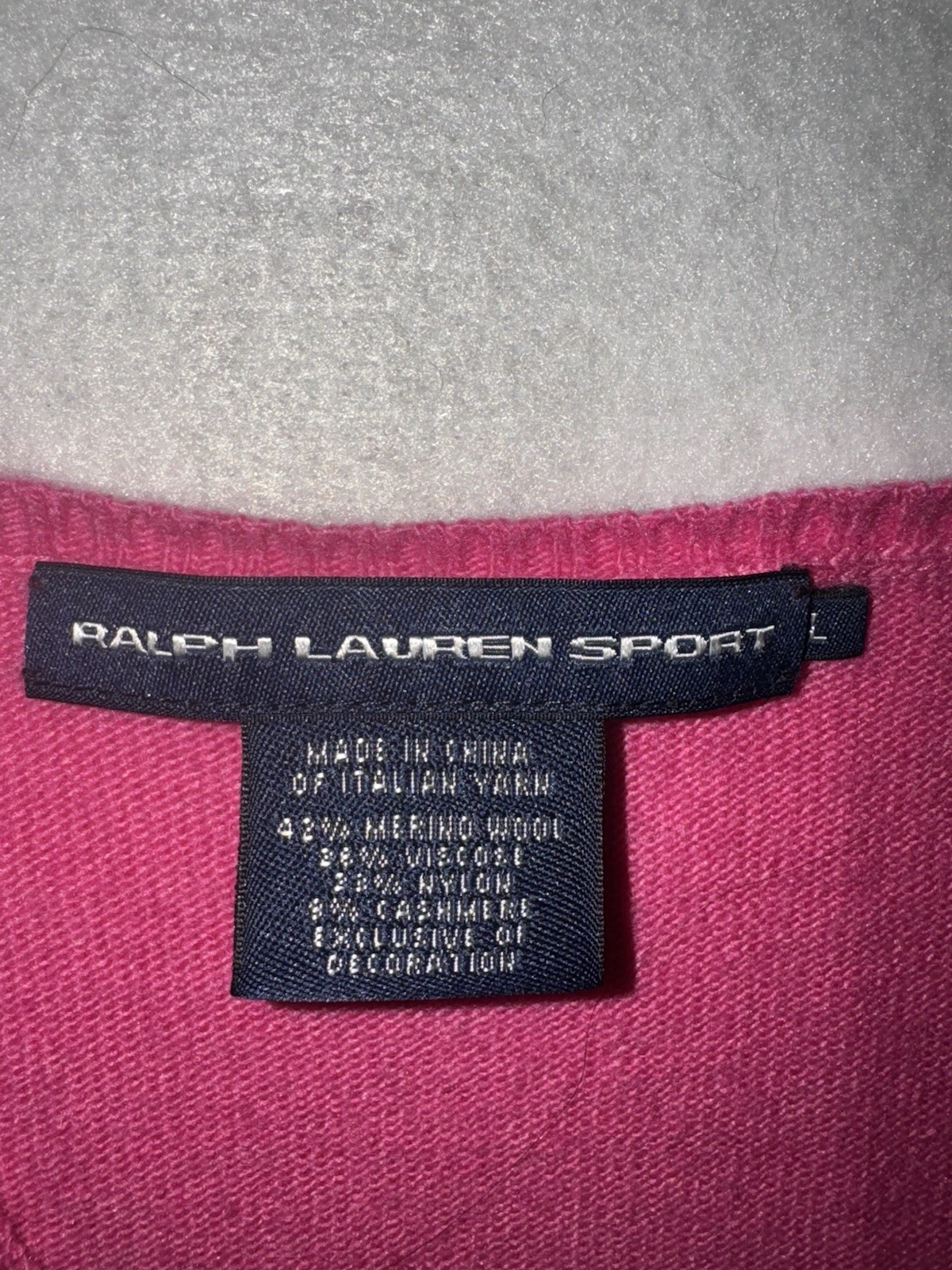 The product is a stylish Ralph Lauren Sport women's V-neck sweater in pink, made from a luxurious Merino Wool Cashmere Blend. Suitable for travel, casual, and business occasions, this sweater features long sleeves, an embroidered logo accent, and a classic preppy style. The lightweight and breathable design make it perfect for all seasons, especially winter and fall, while the regular fit ensures a comfortable experience for the wearer. Ideal for those who appreciate designer clothing with a sophisticated touch. Sweater is in excellent condition with no stains, rips or damage. SOURCED AND SHIPPED FROM A NON SMOKING HOME.