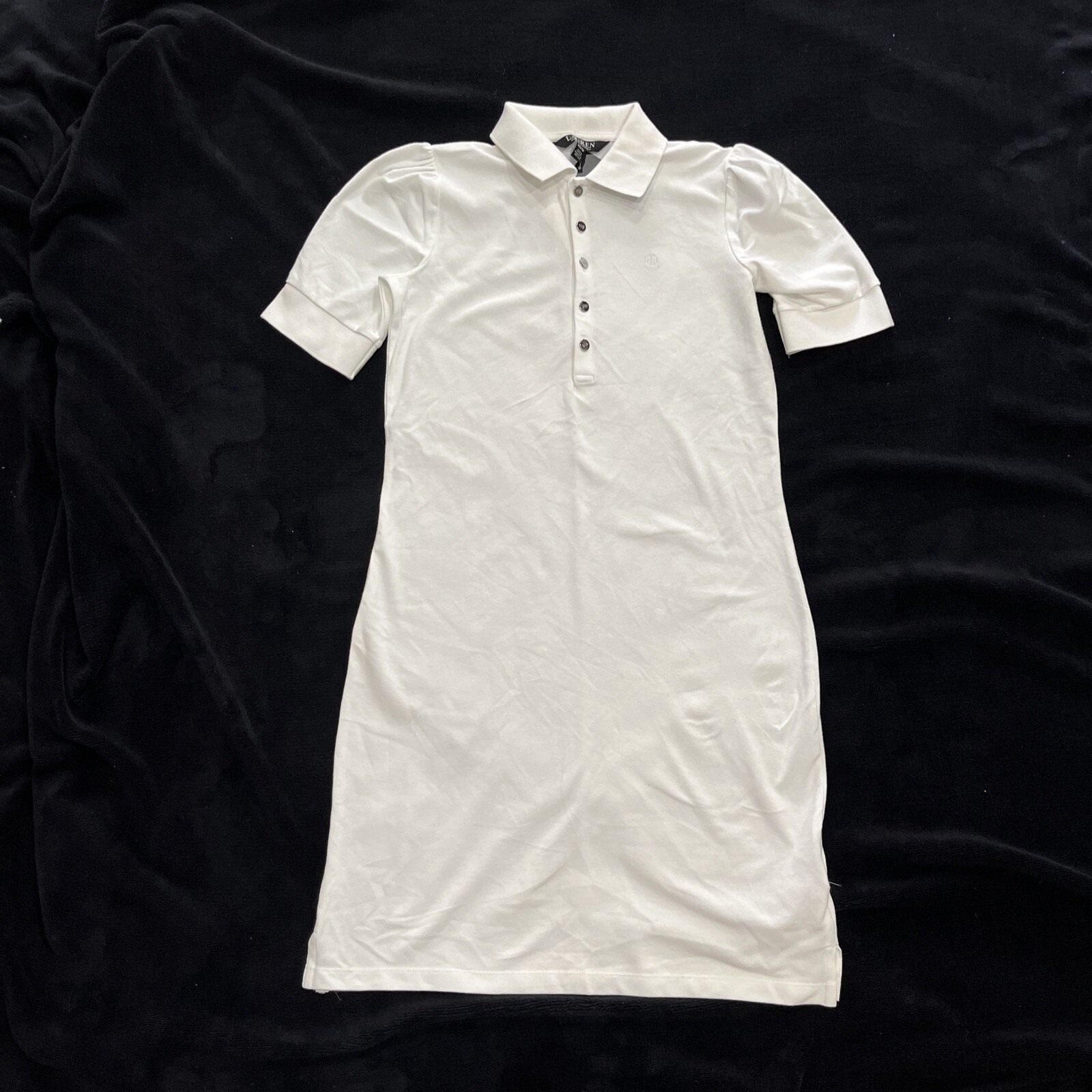Lauren Ralph Lauren polo shift Dress size: XS color: White Collared neckline 5 Button close Straight fit Intended to hit at the thigh Short sleeves with ribbed cuffs Vented hem Logo at the left chest Cotton / elasthane blend retail $125 underarm to underarm " shoulder seam to bottom " R1383