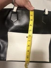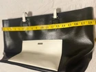 The Ralph Lauren Women's Black Leather Tote Bag is a stylish and versatile accessory for women on the go. With a generous size of 18" in length, 11" in height, and 7.5" in width, this rectangular tote features a zip closure, double white leather handles, and silver hardware accents. The exterior is made from pebbled black leather, while the lining is crafted from fabric in a beige color. Perfect for travel, casual outings, or business meetings, this tote exudes sophistication and practicality, making it a must-have for any woman's wardrobe.