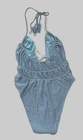 Ramy Brook women's Marta plunge front one piece Swimsuit size: Large color: Blue Elastic top hem with front ties Boned sides A hint of sparkle Shell: 88% nylon/12% metallic Lining: 92% polyester/8% spandex Hand wash retail $238 K92