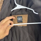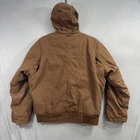 Up for sale is a stylish and versatile bomber jacket made by Real Ranch. This jacket is perfect for men who enjoy spending time outdoors, particularly during the winter season. It features a quilted design, full zip closure, and multiple pockets for added convenience. The jacket is also hooded and wind-resistant, making it ideal for hiking, hunting, and walking. In addition to its practical features, this jacket has a classic and retro vibe, with accents such as a distressed look, collarless design, and metal-themed logos. The canvas material is durable and machine washable, ensuring that the jacket will last for many seasons to come. Get ready to embrace the great outdoors with this Ranch Tough Canvas Jacket!