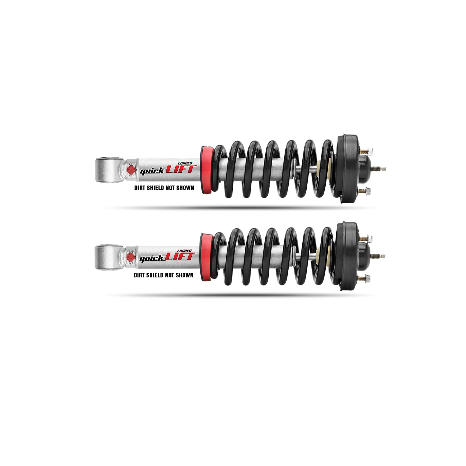 $ImageURL1$ Rancho QuickLift Loaded Front Struts & RS5000X Rear Shocks fits F150 & Mark LT PART NUMBER: RS999910|RS55286 BRAND: Rancho DESCRIPTION Set of Front Loaded QuickLift Strut Assembly & Rear RS5000X Shock Absorbers Brand Rancho Part Number RS999910/RS55286 UPC Does not apply Front QuickLIFT Loaded Complete Gas Charged Strut Assembly (RS999910) Award-winning Rancho® quickLIFT Loaded assemblies level and lift late-model trucks and SUVs, providing an aggressive stance and allowing for the use of larger wheel and tire packages without the cost of a complete suspension system or the long installation time. Note: *All measurements are in inches. Boot/Dust Shield end is upper. All shocks sold individually. Features Gas charged complete modular assembly Includes an application-specific, installed coil spring and upper mounting plate to simplify installation Engineered with the globally renowned and exclusive RS9000XL nineposition adjustability Improve performance and provide the ability to manually tune the vehicles ride Covered by a Limited Lifetime Warranty and 90-Day Free-Ride Offer Easy to Install Pre-assembled with coil spring and upper mount Levels front suspension Removes the factory rake Clears up to 35-in. tires** Creates a custom look, increases ground clearance 9-position tuning technology Easily adjust ride quality and performance Liquid metallic finish Premium long lasting finish Limited Lifetime Warranty and 90-Day Free-Ride Offer Guarantees your investment Shock SpecificationS (RS999910) Compressed Length Extended Length Travel Length Body Type Parts Pack 17.19 22.21 5.02 SS3 P01141 Rear RS5000X Gas Charged Shock Absorber (RS55286) The core of this new and innovative shock from Rancho® is the unique rebound valving system and an advanced compression phase of the shock absorber. This proprietary process developed by the ride engineers at Rancho will elevate the overall handling and performance of your vehicle on and off-road. Note: *Rancho RS5000X series struts include 60PSI of gas pressurization. Features Progressive Engagement Valving Tuned Compression Control Valve Enlarged 2-1/4-inch Twin Tube Body Gas Pressurization of Shock 16 mm Nitro-Carburized Rod Full-Displaced 35 mm Bore 1-3/8-inch Diameter Sintered Iron Piston Rebound Bumper Black, Natural Rubber Bushings Low-Friction, Self-Lubricating Seal Protective Boot Glass-Filled, Fluon Banded Piston Double-Welded Loops Shock Specifications (RS55286) Compressed Length Extended Length Travel Length Lower Mounting Code Upper Mounting Code Parts Pack 16.43 27.22 10.79 LS26 LS26 None Vehicle Fitment Part Number Vehicle Year Pos RS999910 "Ford Pickup - F100, F150 Series 1/2 Ton 4WD" Lincoln Mark LT 4WD 04-08 06-08 F F RS55286 "Ford Pickup - F100, F150 Series 1/2 Ton 2WD" "Ford Pickup - F100, F150 Series 1/2 Ton 4WD" Ford Pickup (1/2 Ton) 2WD (F Series) Ford Pickup (1/2 Ton) 4WD (F Series) Lincoln Mark LT (1/2 Ton) 4WD (Pickup Lincoln Mark LT 4WD 09-13 04-08 09-13 04-08 06-08 06-08 R R R R R R