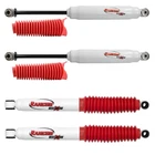 $ImageURL1$ Rancho RS55267, Rancho RS55273, Rancho RS5000X, Shocks, Shock Absorbers, Suspension Shock Absorbers, OEM, Front Rear Set, Front & Rear Set, 99-04, Ford F-250 Super Duty 4WD, F250, 0" Lift, 0"Lift Rancho RS5000X Front Rear Suspension Shock Absorbers for F250 Super Duty 0" Lift PART NUMBER: RS55267 / RS55273 BRAND: Rancho DESCRIPTION Rancho RS5000X Suspension Shock Absorbers Featuring a unique, exclusive valving system and advanced compression functionality, Rancho RS5000X shocks deliver improved overall on- and off-road handling and performance. FEATURES & BENEFITS IMPROVED HANDLING AND PERFORMANCE -- Cross Tuned technology featuring exclusive rebound valving system and advanced compression phase improves overall handling and performance on and off road MINIMIZES ROUGH RIDE -- Exclusive Progressive Engagement Valving is custom-tuned for each vehicle to help reduce initial impacts at low speeds and minimizes a rough ride STRONG AND DURABLE -- Features a 16mm nitro-carburized piston rod to resist scuffs & corrosion, double-welded loops at stress areas, 35mm sintered iron piston for enhanced structural integrity and polyvinyl protective boot HANDLES EXTREME TEMPERATURE CHANGES -- Large twin-tube body filled with all-weather fluid allows for cooler operation, increased vehicle control and ability to withstand internal temperatures of -40 to 248°F SMOOTH PERFORMANCE -- Polyurethane rebound bumper and rubber bushings help absorb ride harshness while the fluon-banded piston enhances responsiveness to changing road conditions for an overall smoother ride REDUCES FADE -- Nitrogen gas pressurized to 150 PSI to minimize air-to-oil mixture to reduce damping performance fade and foaming MAINTAINS VEHICLE CONTROL -- Compression Control Valve is custom-tuned for each vehicle to regulate fluid transfer to absorb impacts without disc flutter and help maintain shock motion control BUILT TO LAST -- Low-friction, self-lubricating seal retains gas and oil for quicker rebound and smoother compression while the application-specific piston delivers heightened control of shock motion due to the expanded piston area BUY WITH CONFIDENCE -- Comes with Rancho’s Limited Lifetime Warranty SPECIFICATIONS: (RS55267) Color: White Type: Telescopic Mounting Hardware Included: No Extended Length: 22.92" Shock Stroke: 8.66" Lower Mount Type: Loop Bushing and Sleeve Mount - 12MM Sleeve ID X 1.1/2" Sleeve OAL Upper Mount Type: Loop Bushing Mount - 5/8" Bushing ID X 1.5/16" Bushing OAL Boot Included: Yes Gas Charged: Yes Body Diameter: 2.25" Compressed Length: 14.26" Travel Length: 8.66" Finish: Painted Shaft Material: Nitrocarburized Shock Absorber Rod End Measuring Point: Center of Loop Shock Absorber Body End Measuring Point: Center of Loop Rod Diameter: 0.622" Cylinder Outside Diameter: 2.25" Internal Construction Type: Twin Tube Dust Shield Material: Rubber Upper Mounting Code: L1 Lower Mounting Code: LS26 Shock Absorber Bore Size: 1.3779527559055118" / 35mm Valving Type: Progressive SPECIFICATIONS: (RS55273) Color: White Type: Telescopic Mounting Hardware Included: No Extended Length: 28.08" Shock Stroke: 11.19" Lower Mount Type: Loop Bushing and Sleeve Mount - 12MM Sleeve ID X 1.1/2" Sleeve OAL Upper Mount Type: Loop Bushing Mount - 5/8" Bushing ID X 1.5/16" Bushing OAL Boot Included: Yes Gas Charged: Yes Body Diameter: 2.25" Compressed Length: 16.89" Travel Length: 11.19" Finish: Painted Shaft Material: Nitrocarburized Shock Absorber Rod End Measuring Point: Center of Loop Shock Absorber Body End Measuring Point: Center of Loop Rod Diameter: 0.622" Cylinder Outside Diameter: 2.25" Internal Construction Type: Twin Tube Dust Shield Material: Rubber Upper Mounting Code: L1 Lower Mounting Code: LS26 Shock Absorber Bore Size: 1.3779527559055118" / 35mm Valving Type: Progressive