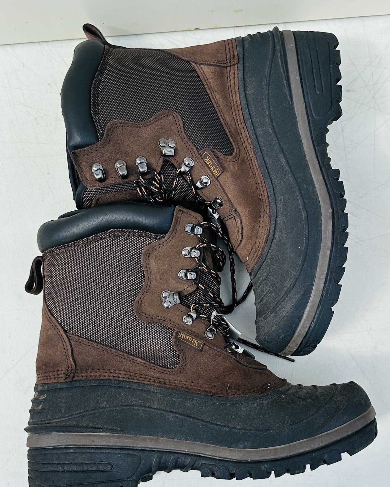 Never worn Dust from the shelf on picture, will clean before shipping These Ranger Summit A492 boots are a perfect addition to any gentleman's shoe collection. Crafted from high-quality leather, these lace-up boots are built to last and provide maximum comfort for the wearer. The brown color and combat style make them versatile enough to wear for both casual and outdoor activities. The boots come in size 13 and are designed to fit men. The outsole and upper material are made of leather, ensuring durability and breathability. Whether you're going on a hike or just running errands, these boots will keep your feet protected and stylish.