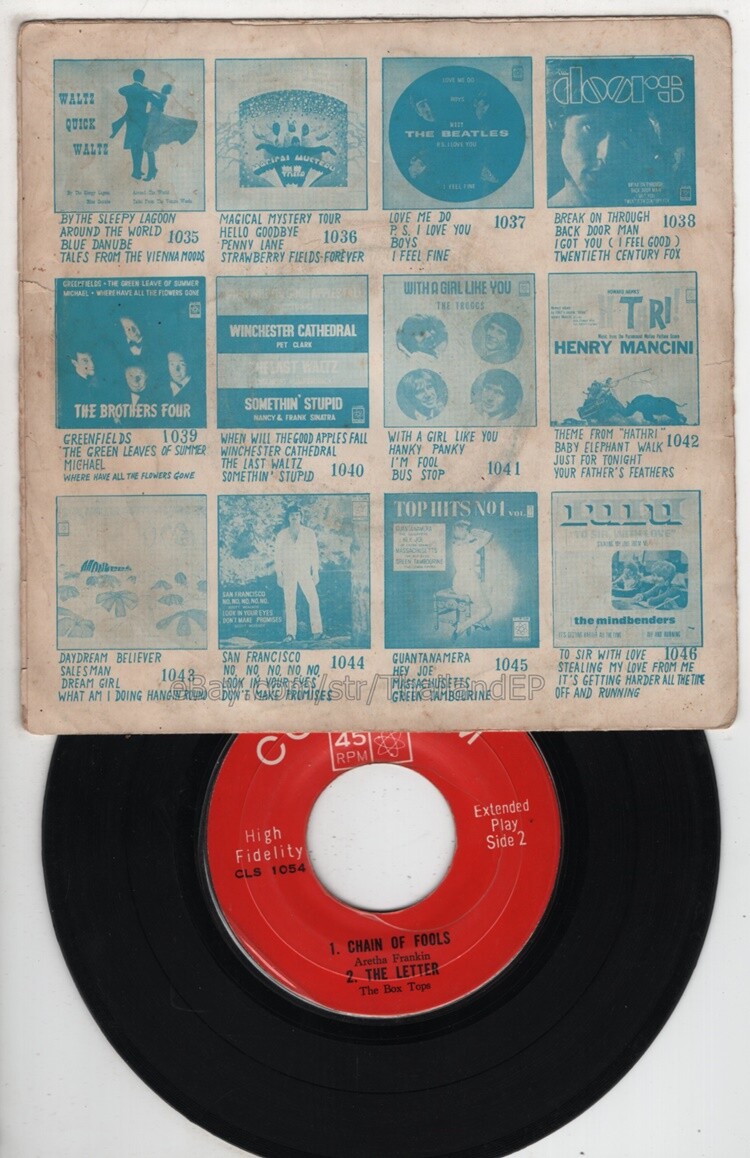 Welcome to The World of ""Thailand Vinyl Records"".Very rare and beutiful picture of cover. Check everyday . This item is for a true 7" single collector. It was printed and sold locally as limited EP back in the early 70's. Only few copies were spread outside Thailand. Most professional record collectors know that it is scarce nowadays and is absolutely a collector's item. If you know a UK magazine called RECORD COLLECTOR then you must have read many articles mentioning THAILAND EP and this is it !!! Here is your chance to own one-of-a-kind piece of Asian's 7" single history. Description Records !!! DETAIL SONG and ARTIST !!! Side A: A1 = 1910 Fruigum Co - Simon Says / A2 = The Union Gap - Young Girl Side B: B1 = Aretha Frankin - Chain Of Fools / B2 = The Box Tops - The Letter Label&Catalogue number : : CLS1054 Country of release : THAILAND Condition (Sleeve/Disc) : EX / VG++ and pls see picture too. Shipping I am seller in Thailand not USA.So I can not ship 4$ as policy pls understand this real rate from oversea . Price for shipping(Airmail )&Packaging to worldwide only US 14.99 USD .Except Asia and JAPAN only 14.99 USD. You can save cost for combine shipping only 3 USD$ per each. 2xEP=17.99 USD$ , 3xEP=20.99 USD$ . My package very safety by big cardboard don't worry about your's EP/PS/LP. Time delivered 21-45 days . ***All item : have tracking system no need add money*** **For normal shipping (Airmail).Time delivery to ITALY maybe use 1-2 Months, France use 1-2 Months.But Don't worry item will arrived to you sure!!.For fastest and High value you can use Express Mail Service cost for1 EP =39 USD.EP will arrived to you within 5-7 Days. ***All shipment have fully tracking system *** Payment PAYMENT : I accept the follow payment by eBay managed , . My ID eBay provide by eBay .Account will be provide at the end auction.Charges to be covered by winner. If you have question pls email to me anytime i can answer immediatly. I have many EP,PS 7" Thailand Pls Click => View seller's other items Check my feedback , I care and honest all customer.I welcome 0 feedback but contact me first if you will bidding. Good Luck !!!! and Enjoy . 45 RPM / EP/ LP Grading Scale: Mint /NM/ Excellent(VG++) /VG+/ VG /G+ /Good(G) / Fair / Poor / Bad (According Record Collector Magazine (UK))