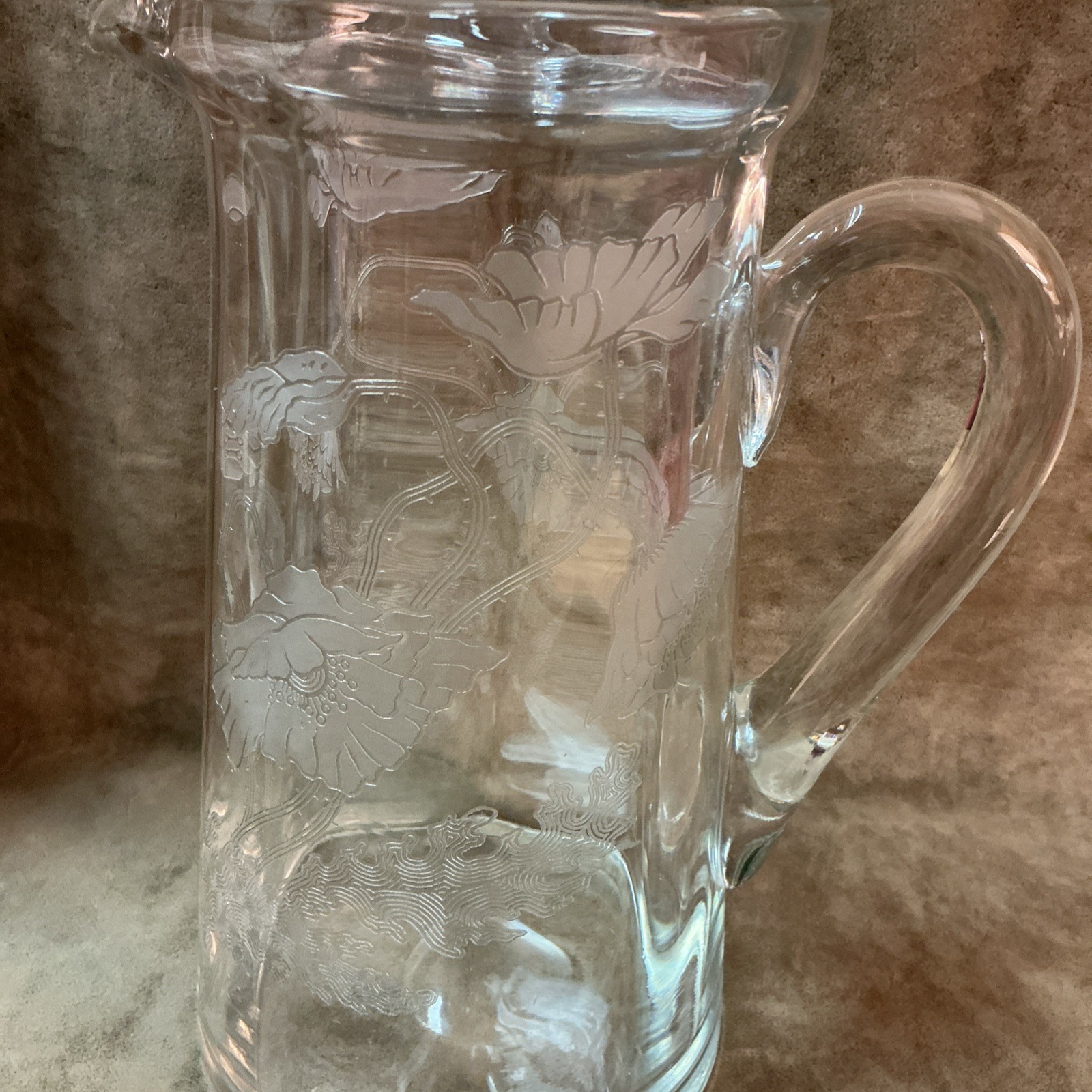 Vintage Lead Crystal Diamond Star Cut Faceted Flower Water Pitcher