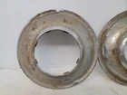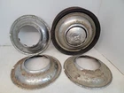 Hello, this listing is for a rare set of (4) vintage wire wheel cover discs that fit on a 1935 Ford 16-inch wheel like shown. The wheel in the pictures is not included, it is only shown so you can see how they fit. They are beat up and have peeling chrome. They would look great on a survivor hot rod as they sit, or go ahead and restore them for your show car. I'm not positive if these were made by Lyon. There is a partial manufacturer stamp on the one of them as-shown. Please ask any questions first, thank you.