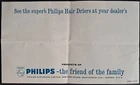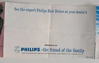 Rare 1960s PHILIPS hair dryer leaflet Fold out leaflet 225 x 133mm Good vintage condition for age - folds and creases - see photos for full details. Has been folded - so will be folded to send.