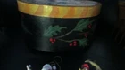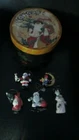 Never used....Super rare(no one wants to give their set up). Complete.. The box with the hand painted art work is amazing in itself....then you get the 5 special gift giver ornaments..faux sugar coated. The detail in everything is true art. Oval box is also painted on the sides with holly. Box is 10 1/4" x 5 1/4" tall. 1999 by Denise Calla.