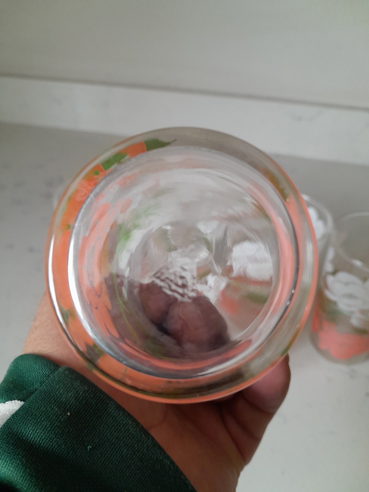 This product is a set of four rare vintage 1950s Federal Glass Wildrose tricolor juice glasses, measuring 4.75 inches in height. The glasses feature a beautiful floral pattern in a soft pink color, typical of the mid-century design aesthetic. Made of glass, these unique pieces are a charming addition to any collection of drinkware and barware, adding a touch of retro flair to any table setting. Excellent condition