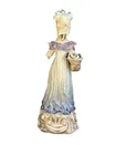 Rare antique/vintage Cordey figurine of a lady in a long dress holding a basket filled with roses and has a flowing luster-ware mantilla and roses in her hair. Lovely hand painted face. Ornate base with gilt trim. No notable chips or cracks the petals are good. 11” tall - 4”x4” base