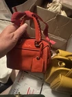 The Rare COACH Ace 14 Mini vermilion suede Leather Crossbody Satchel 21214 Bag Purse is a stylish and unique accessory for women. Made of luxurious haircalf leather, this mini satchel features a vermilion handle/strap color and hardware, adding a pop of color to any outfit. The bag has a zip closure, adjustable strap, and a lightweight design, making it both fashionable and practical. With a limited edition design and clochette accessory, this Coach Ace 14 satchel is a must-have for any fashion-forward individual looking for a chic and versatile piece.