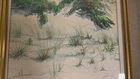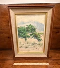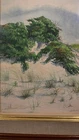 This is an original watercolor painting titled "Covered Dune" by artist Ed Heitman, created in the 1950s post-war period. The painting is medium in size, measuring 12 inches in length and 15 inches in height, depicting a landscape of a covered dune in Long Beach. It is signed by the artist and framed in glass and wood. This one-of-a-kind artwork on cotton canvas showcases Heitman's watercolor technique and captures a beach theme with handmade craftsmanship, making it a unique addition to any art collection. He never used an easel. He would paint while sitting on the sandy beaches. He was known for finishing his art piece in only a couple of hours.