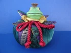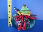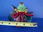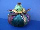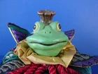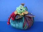 This cute Frog Prince is attached to a soft filled bodies with beans and variety of lush fabrics. His face is made with resin. It measures approximately 5” W, 4” H