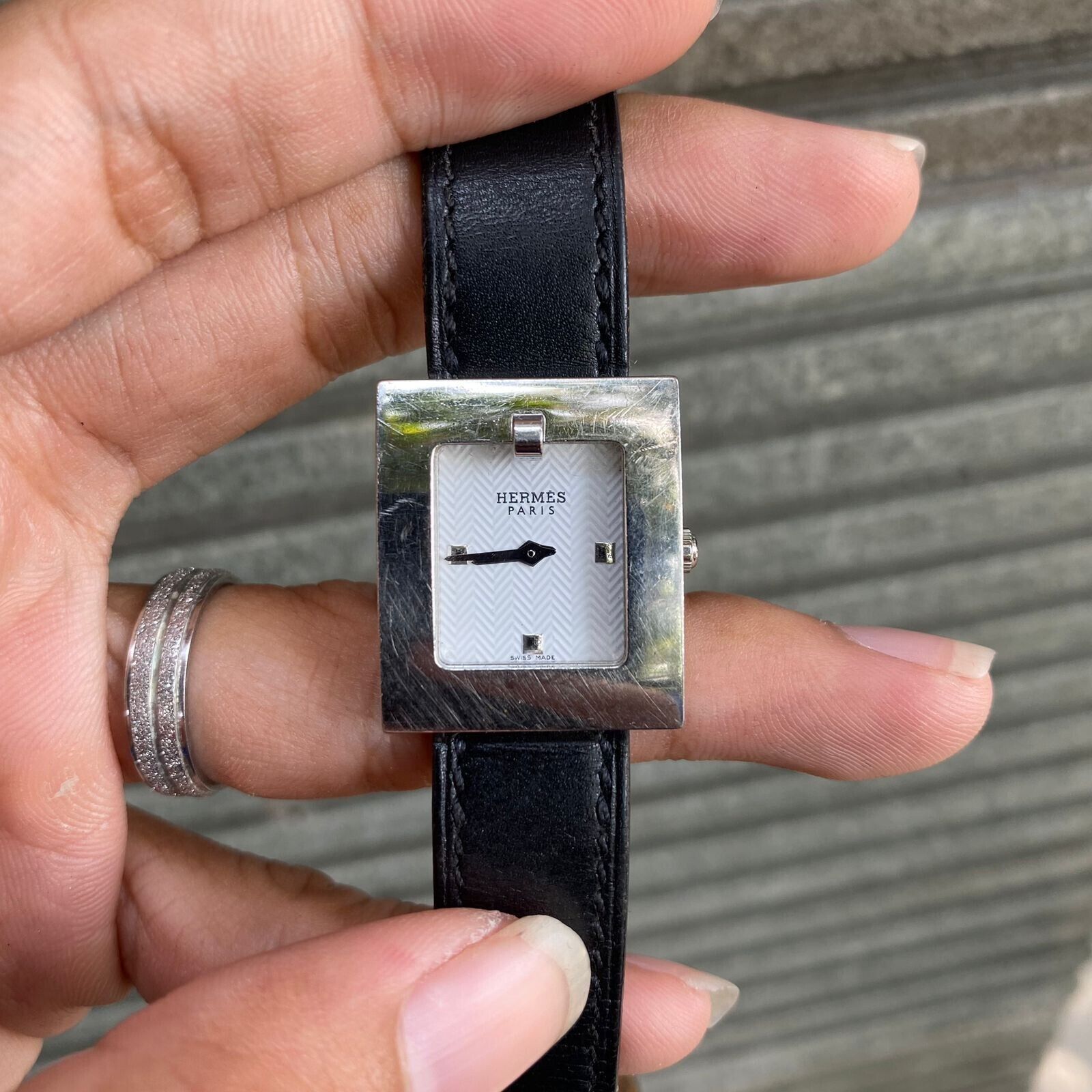 This Hermes Belt BE1.210 watch is absolutely stunning! The sleek white dial and stainless steel case give it such a chic, timeless look. Perfect size for a delicate wrist, and the quartz movement keeps it precise. Even preowned, it's in great condition—feels luxurious and elegant. Love that it comes with fast worldwide shipping. A must-have for any fashion lover!