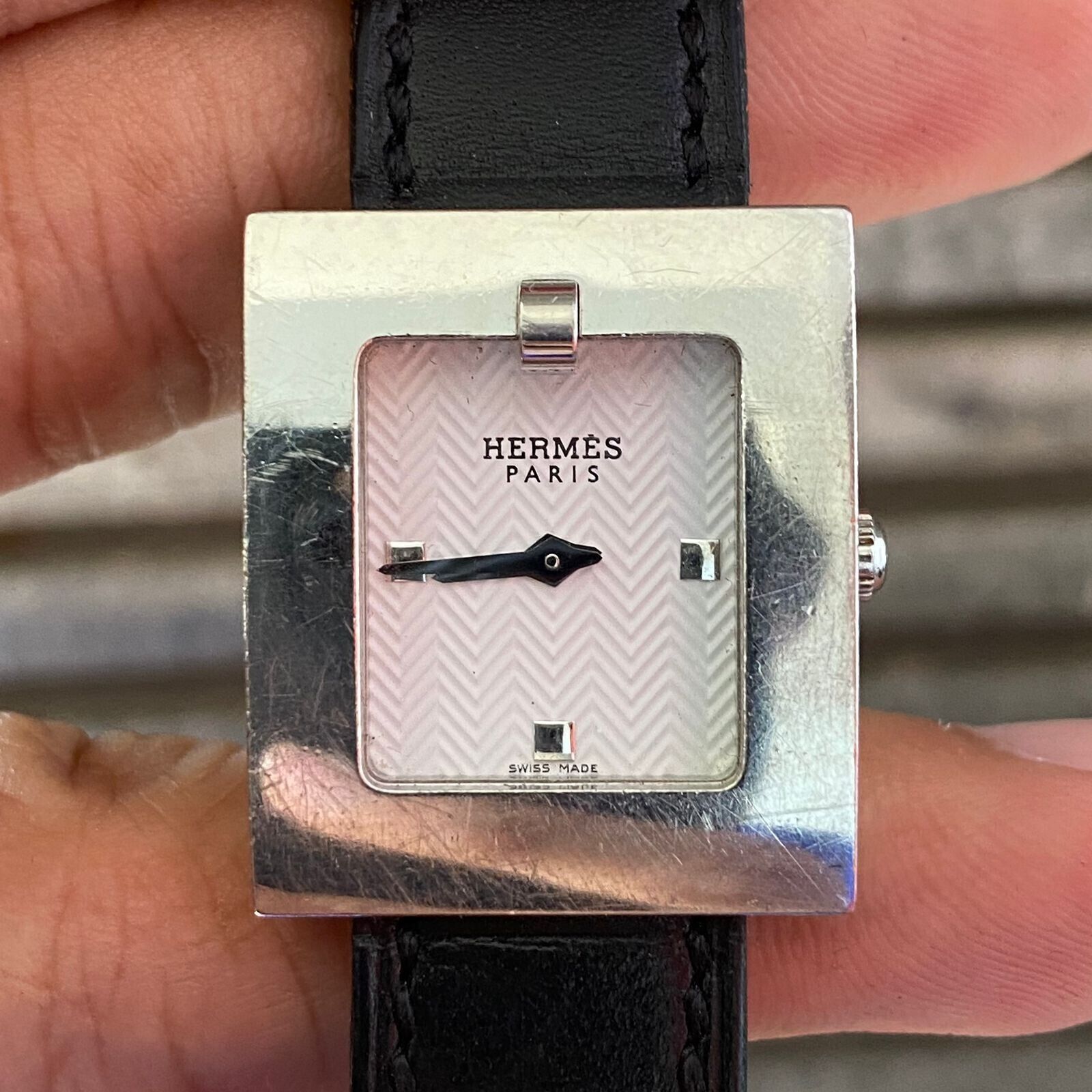 Rare Hermes Paris Belt BE1.210 White Dial Quartz Popular Ladies Watch This Watch is Preowned with Good Condition Brand : Hermes Ref/Model : Belt BE1.210 Movement : Quartz Dial : White Case Material : Steel Case Size : 22mm x 25.5 mm Bracelet : Original Condition : Good ( condition according to photo ) Accessories : Watch Only Shipping , Returns and Sales Terms,: ------------------------------------------- We ship worldwide via Fedex or DHL Express We not accept Return We do combine shipping we not responsibility for Import duties, taxes, and charges , so please check in your country's customs office to determine what these additional costs will be prior to bidding or buying. Please check the item condition and photos carefully before buy or make your bid and Please don't buy/bid if you don't have any intention to buy. Once you make your buy/bid, it means that you are willing to buy it and also willing to pay for the final value and shipping cost. Any condition that is not describe on item's description but shown in photos will be considered as described. Sold As Photo, no return accepted. If you bid and win the auction means that you already understand and accept the item condition as describe above. Listing and template services provided by inkFrog