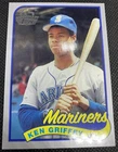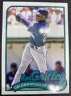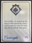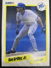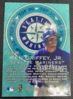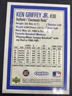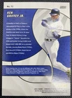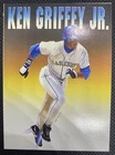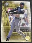 Ken Griffey Jr insert (and a few parallels) cards from various manufacturers. The cards include: 1997 Donruss Leaf Fractal Matrix Bronze #193 (parallel) 2021 Panini Revolution Groove #72 (parallel) 2013 Topps 4-Sticker Insert with Ty Cobb, Willie Mays, and Mike Trout #69S-CMGT 2016 Topps 65th Anniversary #41T 1994 Topps Stadium Club Dugout Dirt Gold #7 (parallel) 2024 Topps Celebration of the Kid #KID-13 1993 Upper Deck On Deck #D13 Cartwrights NNO 1990 Fleer Box Bottom #C-10 (immaculate condition) 1998 Topps Stadium Club Playing With Passion #P10 2001 Upper Deck Ritz & Oreo All Star Game #30 1997 Fleer Ultra Top 30 #2 2001 Upper Deck Promotional ("Sample") 001