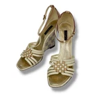 $ 13.18Coach Felicia Sandals Women 9.5 Ivory Gold Signature C Wedge Platform Thong Shoe