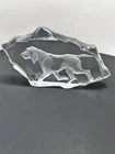 This rare Mats Jonasson Crystal Paperweight features an engraving of a hunting dog, showcasing the intricate artistry of the renowned artist. Handmade in Sweden, this exquisite piece is crafted from clear crystal, highlighting the fine details of the design. Signed by the artist, this paperweight is a collectors' item that adds elegance and sophistication to any space.